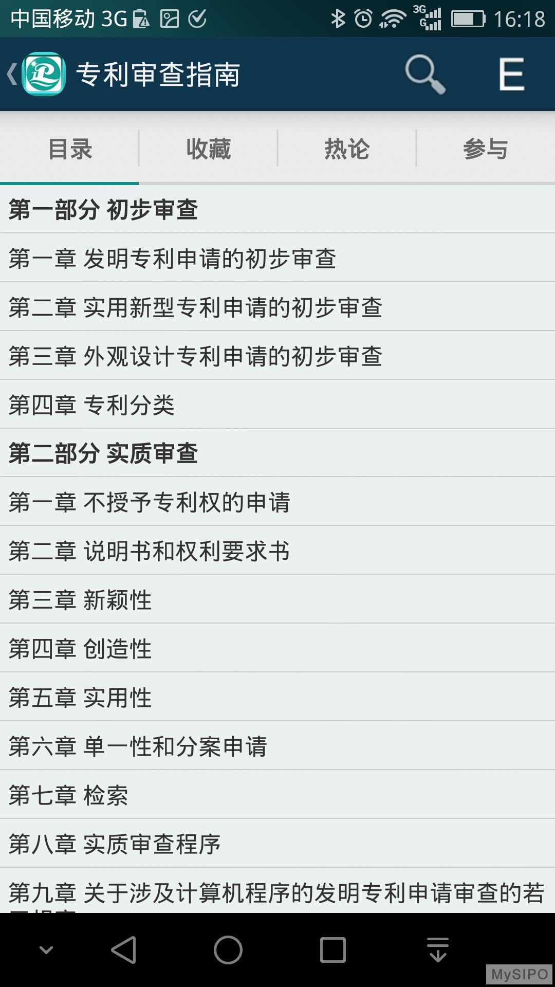 新增2010版专利审查指南,可以实现中英文切换、查询、收藏、针对某章节内容进行讨论。