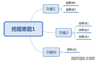 这种拆解方式对于软件专利挖掘来说是最为常见的,因为大部分软件是可以基于功能来进行划分,并且软件专利的技术方案一般也是从功能角度描述。在从功能上进行拆解时,可以逐步拆解,直到功能模块最小化。再从不同的功能模块出发,引导研发人员讲述其中创新点。例如,该功能同类产品中是否存在,若不存在,则为新的功能,若存在,则进一步引导功能实现上是否有区别。