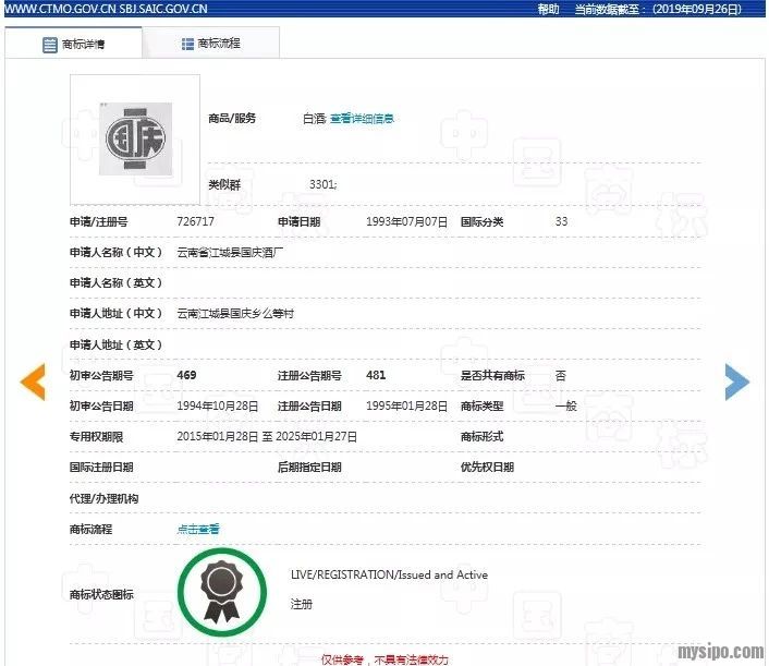 第一件国庆商标使用商品为白酒,该商标注册人为云南一个偏远的边境县城的一家酒厂,拥有一件合法使用的“国庆”商标。