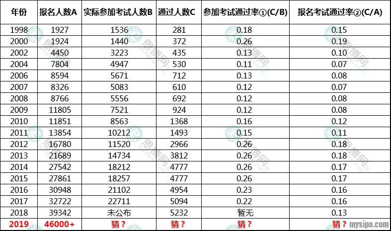 (推荐阅读原帖:2019年全国专利代理师报名人数出炉,历年专代考试报名人数及通过率一览(1998-2018))