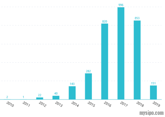 首先,我们先来看一组数据。图1为国内某动力电池公司的专利申请趋势。该公司成立于2011年,是国内率先具备国际竞争力的动力电池制造商,专注于新能源汽车动力电池系统、储能系统的研发、生产和销售,致力于为全球新能源应用提供一流解决方案。据网上数据可考,该公司2017年研发投入16亿,2018年研发投入金额达19.91亿元,占营业收入比例为6.72%。与此相对应的是该公司在成立的数年之内专利申请数量急剧增长。