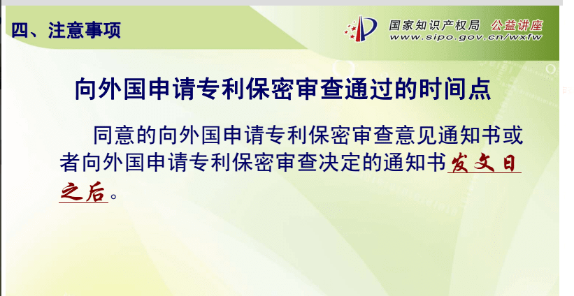 虽然国知局的课件应该更有权威性,但我还是想确认一下,这个提交外国申请的时间点,有没有更权威的出处?
