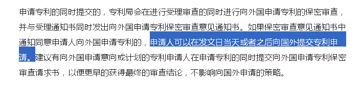 但又有几个网站说是“申请人可以在发文日当天或者之后向国外提交专利申请”。