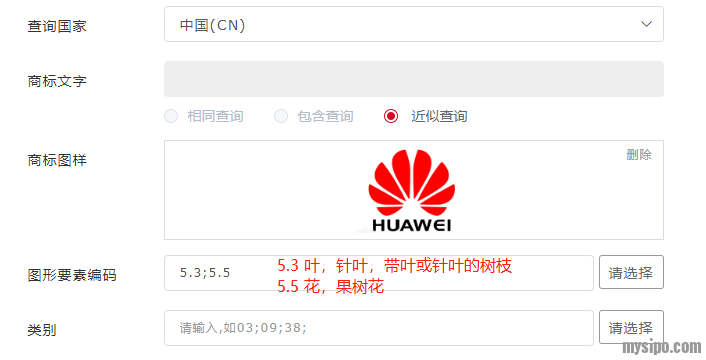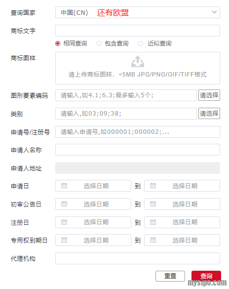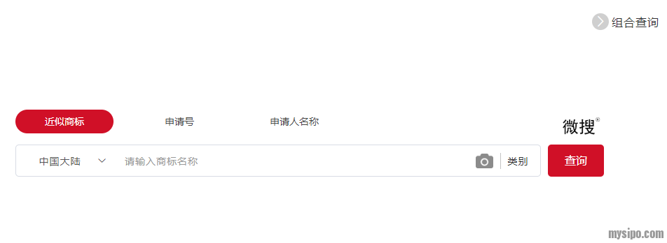 快速查询界面提供“近似商标”、“申请号”、“申请人名称”三大类检索选项。在“近似商标”检索选项内可以通过图片和文字进行商标检索。