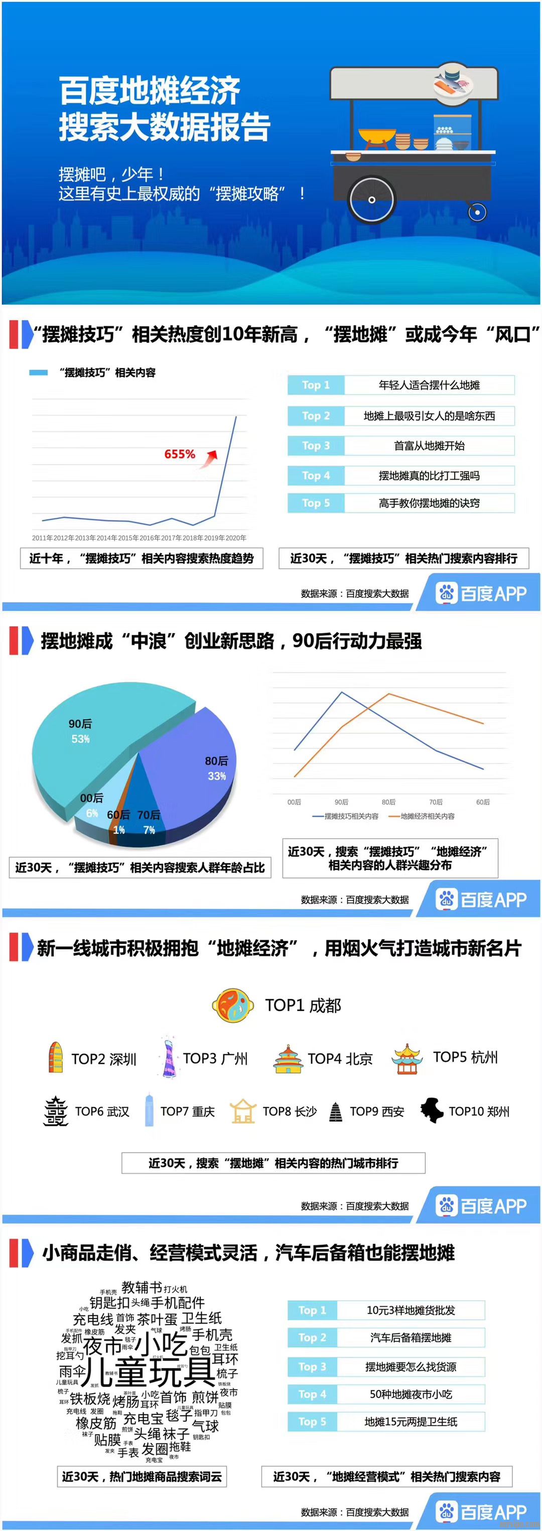 这两天地摊经济热度高涨,百度搜索大数据发布“摆摊攻略”,80后、90后占据主导