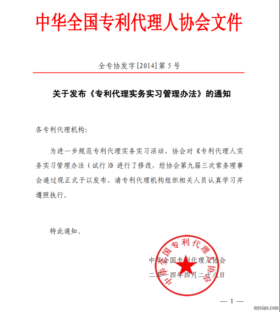专利代理实务实习管理办法(2014年版)