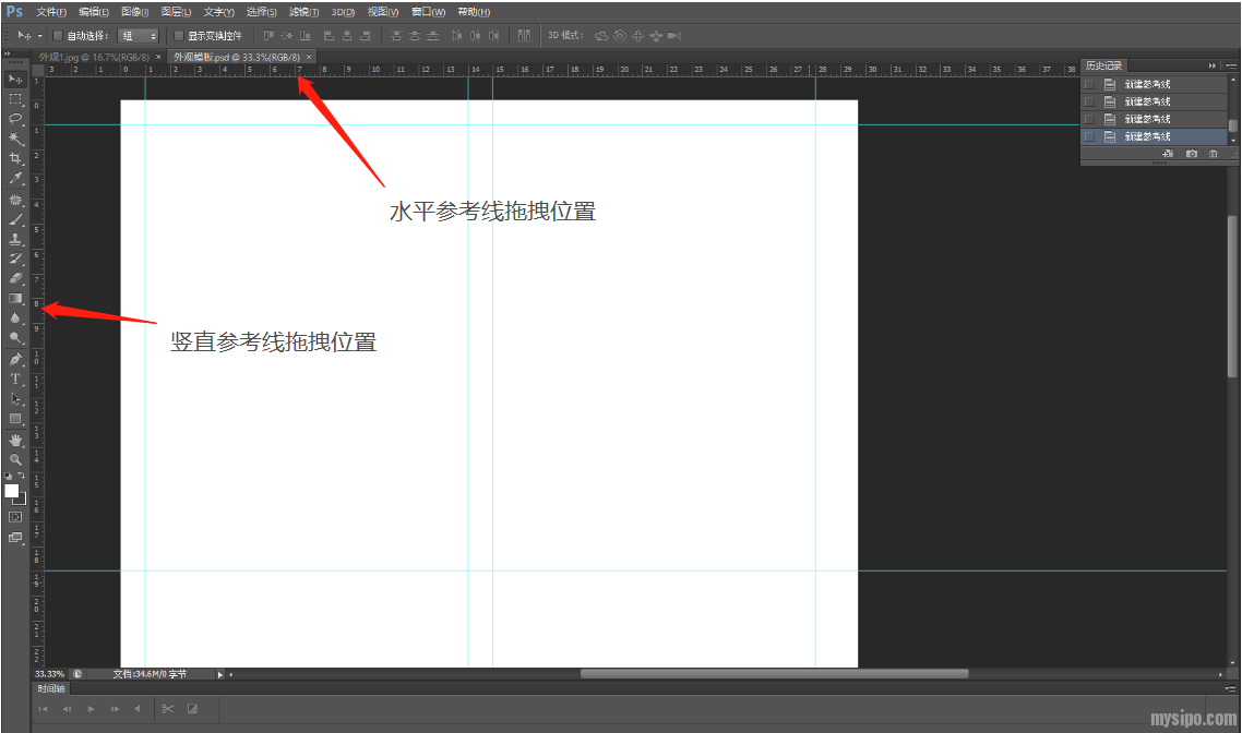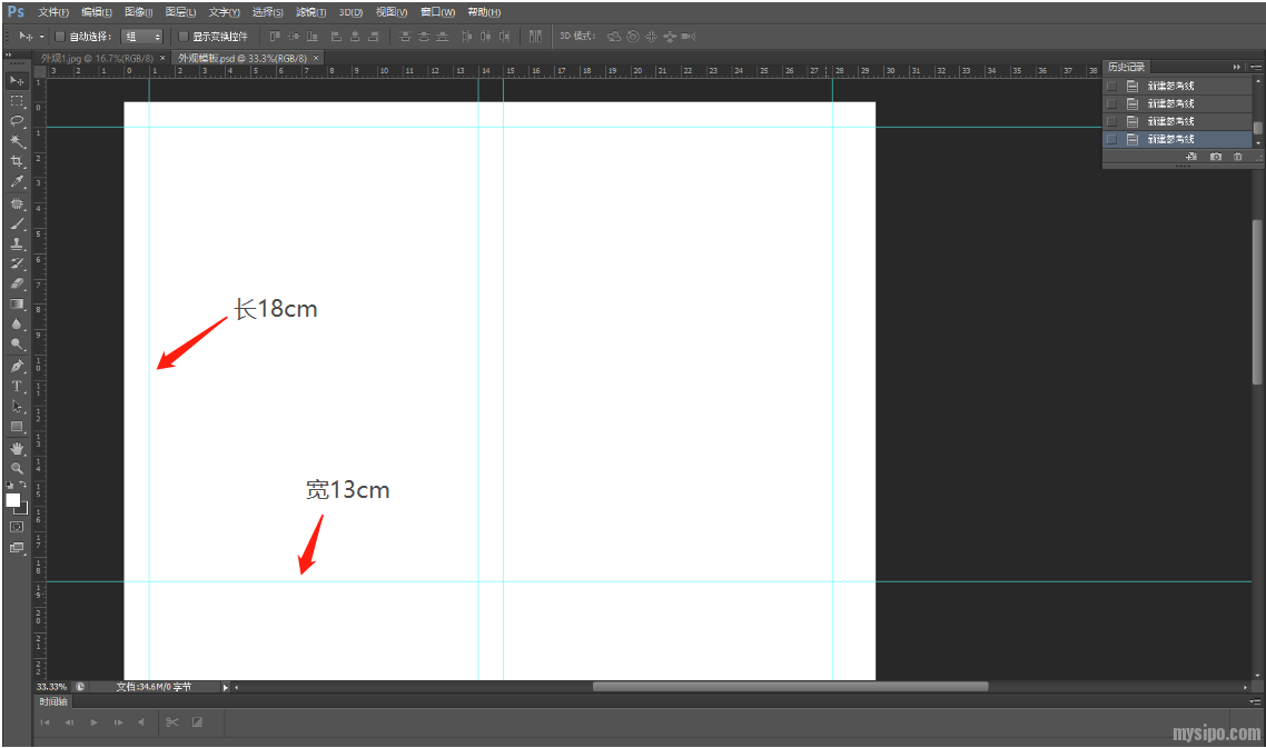 2、在新建的图纸上创建参考线(参考线创建好后可以保存psd模板,下次做外观时可以直接调出)