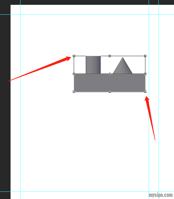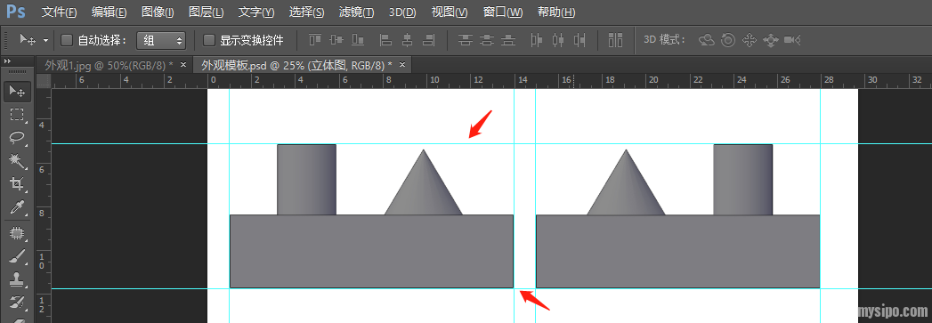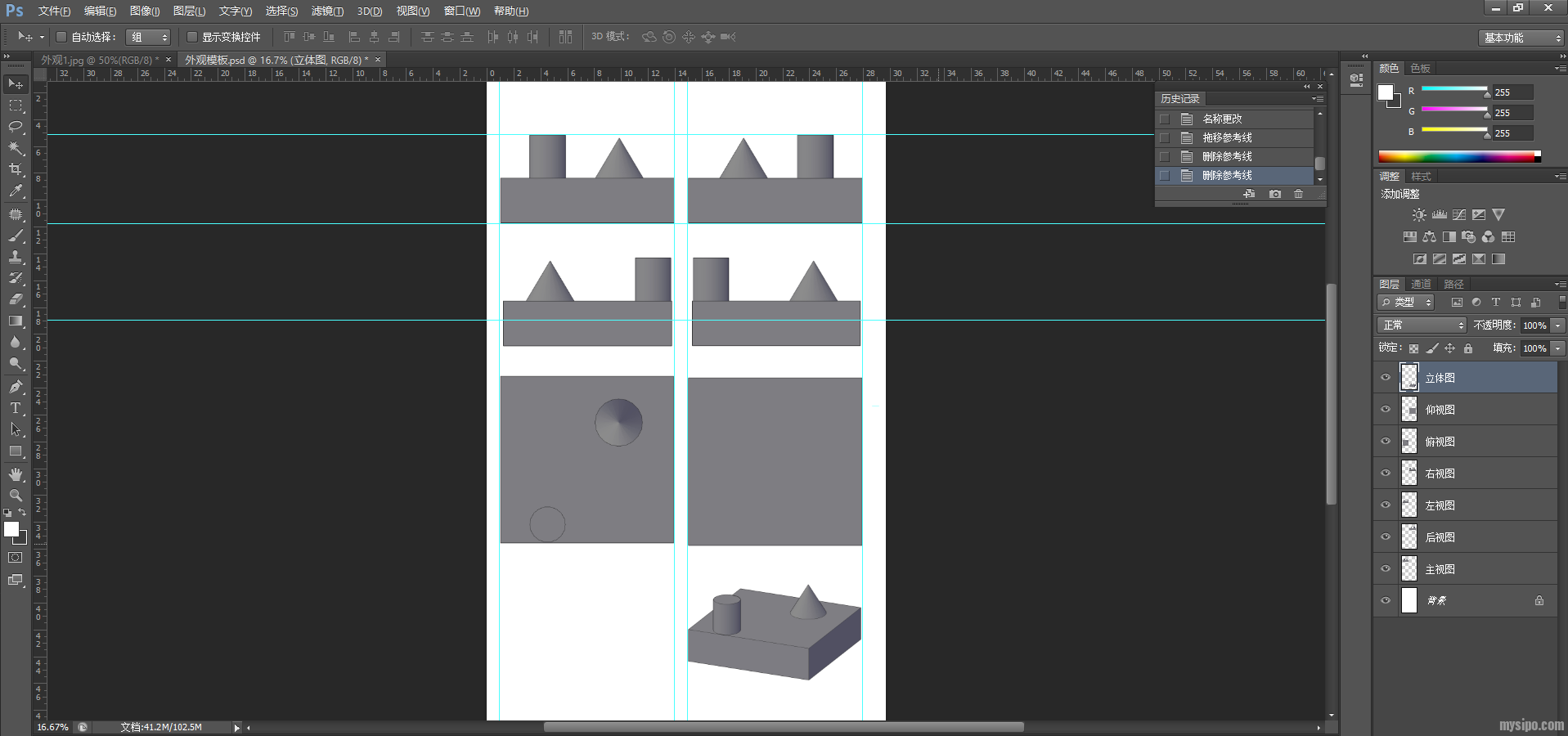 随后按照六视图尺寸比例,借助参考线调整后视图的尺寸(在调整时,可以多拖拽出几条参考线)