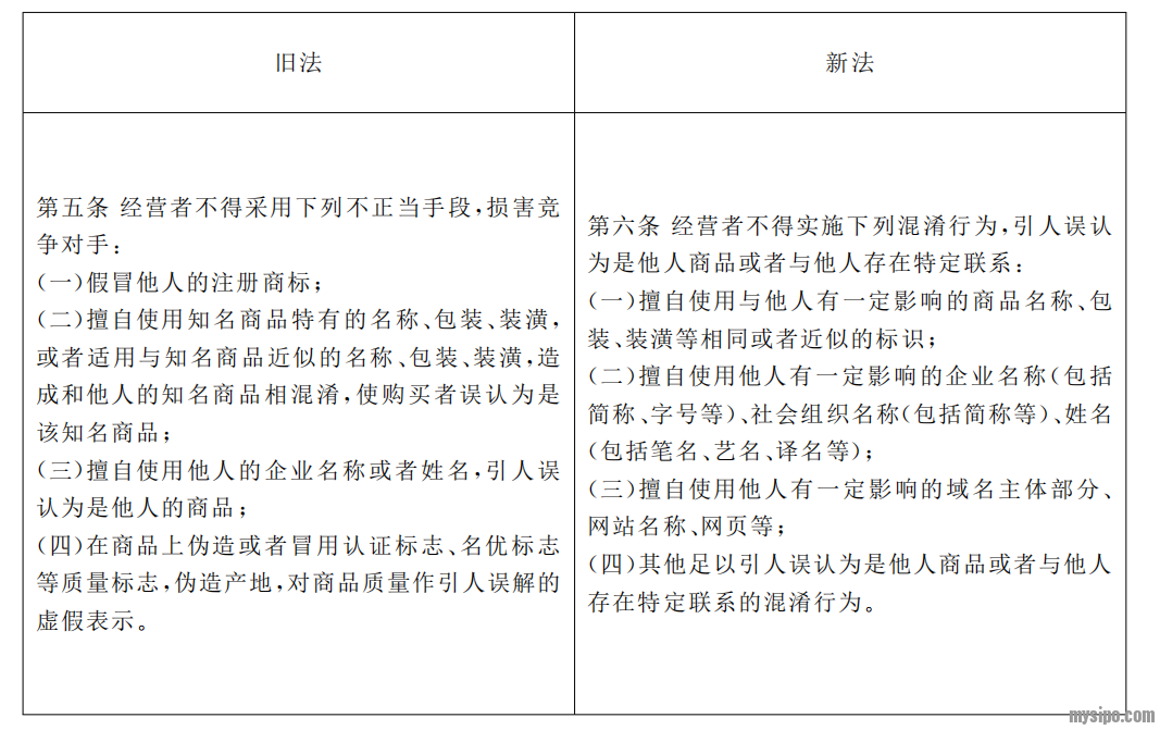 修改前后的主要区别为:一是删除“知名商品”的限制,修改为“有一定影响”。二是在“企业名称或姓名”之前也加上“有一定影响”。三是增加了擅自使用他人“有一定影响”的域名主体部分、网站名称、网页等为不正当竞争行为。