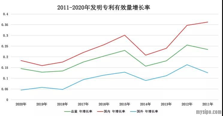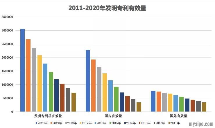 公布的2020年三类专利授权量和有效量中,发明和实用新型专利的年度授权量都非常喜人,但个人认为可以深度挖掘发明专利有效量获取一些授权量信息。