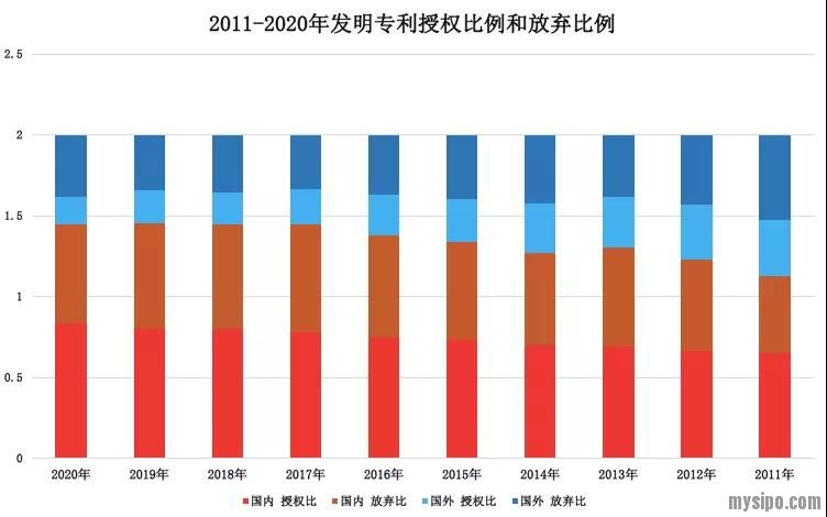 虽然未公开2020年发明专利审结量,但参考在2015年的发明专利授权量同比增长54.1%时,我国专利局的发明专利授权率为64.3%而2014年仅为54.1%。