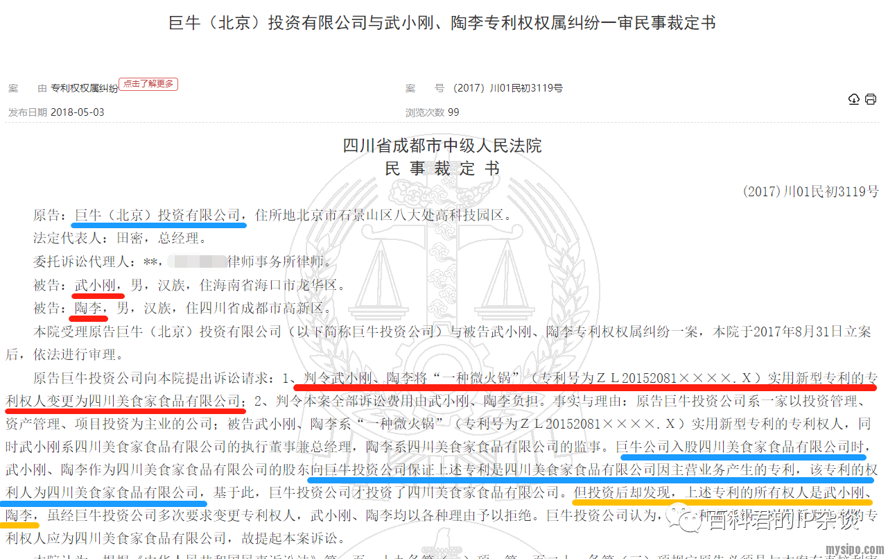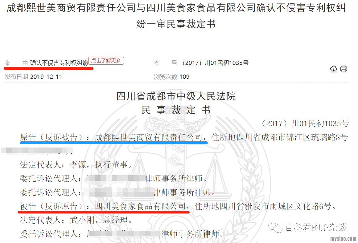 虽然没有公开具体的涉诉专利,但是A公司名下无专利,而B公司后续又针对那件自热火锅发起过无效,因此涉诉专利就是自热火锅“基础专利”的可能性极大。