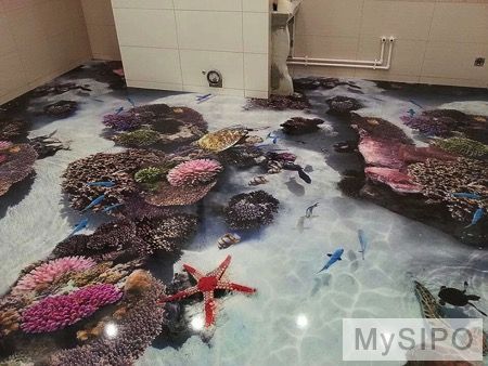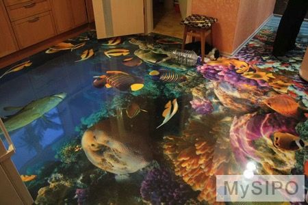 迪拜的一家设计公司使用环氧树脂将逼真的3D水世界融入酒店、办公室和购物中心的地面装潢,使用多幅不同角度拍摄的高清照片复制出让人眼光缭乱、以假乱真的水下美景,让你在室内也能徜徉海底~(来源:专利之家)