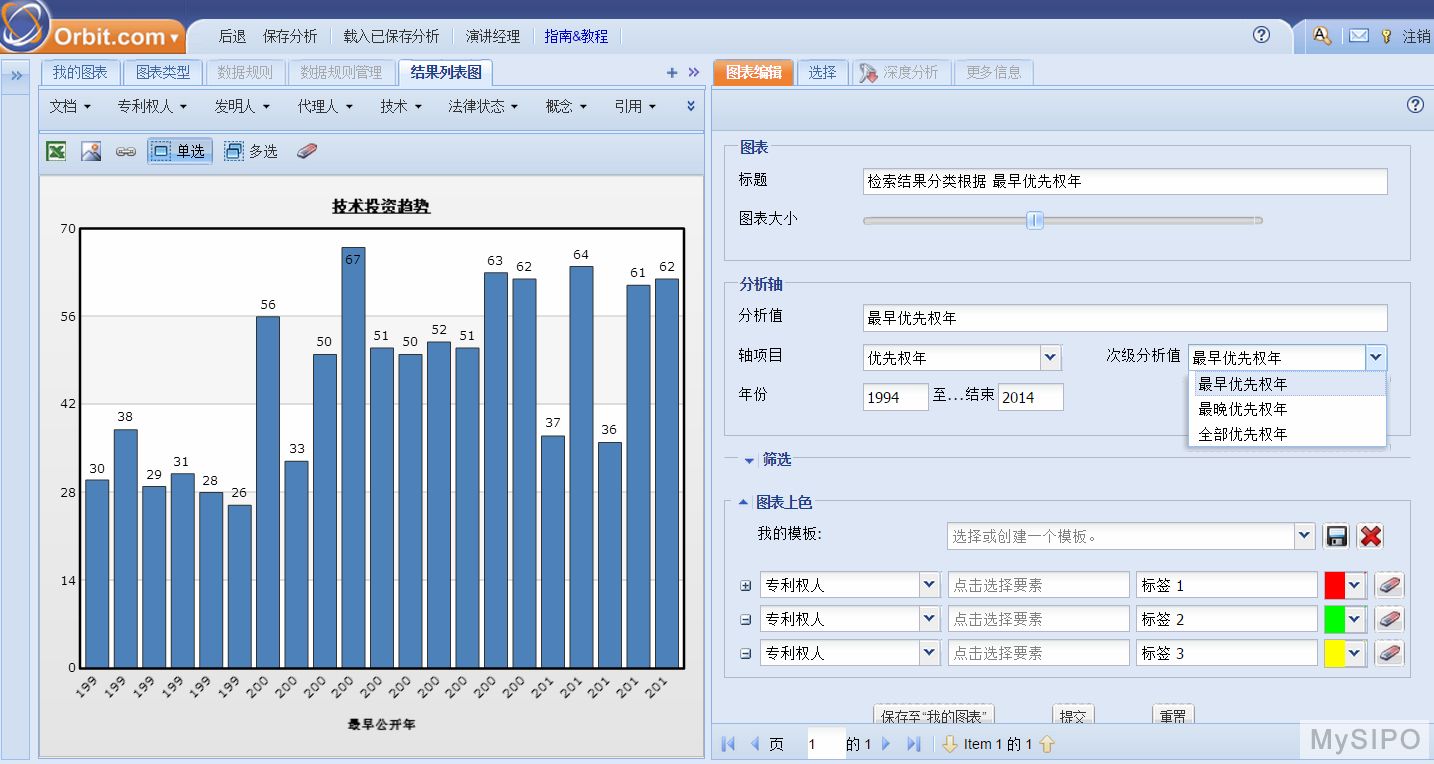 1.在分析“技术**趋势”时 轴向有优先权年,次级分析值有“最早优先权年、最晚优先权年、全部优先权年”请问这是什么意思?