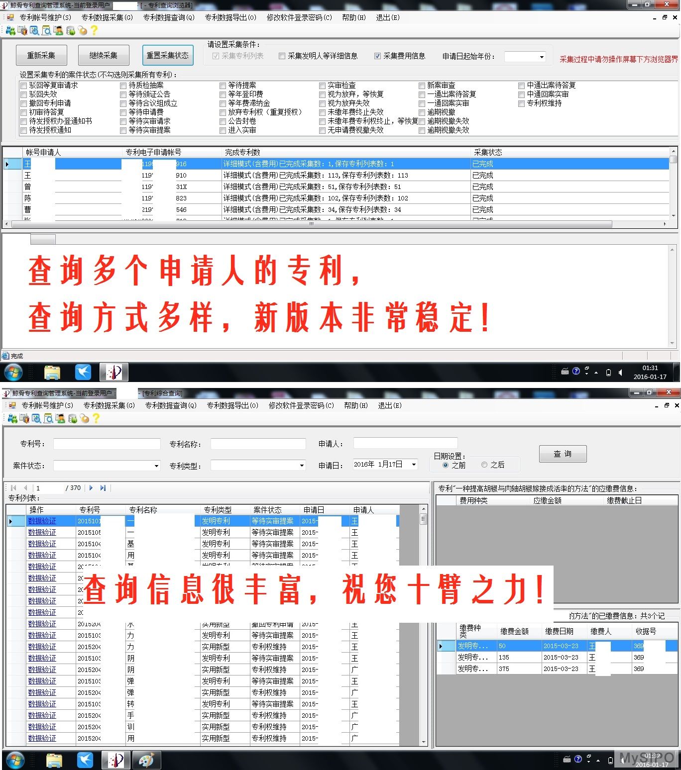 2015年8月,中国专利查询系统改版,以往很多的专利管理软件不能正常使用了。发明人和科技公司联合开发软件。