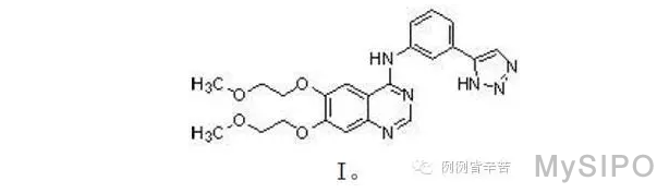 该专利的权利要求仅仅要求保护了一个具体的分子式,除非该分子效果奇特,否则保护范围很小,很容易被竞争对手规避。而该抑制剂的来源其实是在专利药物厄洛替尼的基础上将其一个炔基替换成三氮唑的结构,通过检索发现将一个炔基通过Click反应能够较容易地替换成三氮唑。尽管没有检索到厄洛替尼本身也能作为IDO抑制剂,但是从该专利的申请策略以及后继没有持续发展或者海外申请来看,这个专利应该不是今天我们需要详细研究的。