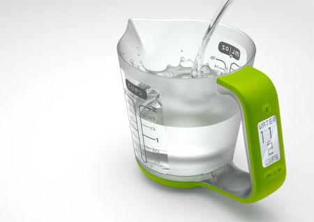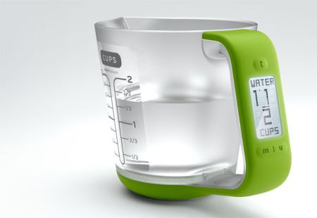 量杯可以给喜欢做饭的朋友帮上不少忙,是厨房里面的常见工具。这款智能数码量杯安装了先进的金属感压器,可以更加直观地通过LCD液晶屏显示测量数值。方便的单位换算按钮让您可以轻松地在多种计量单位间转换,当所加容量超过预设值时,机身还会发出“滴滴”的警报声。此外,这款量杯的称重部分可以摘取下来,以便您清洗杯体。预计这款产品将于今年秋天上市。