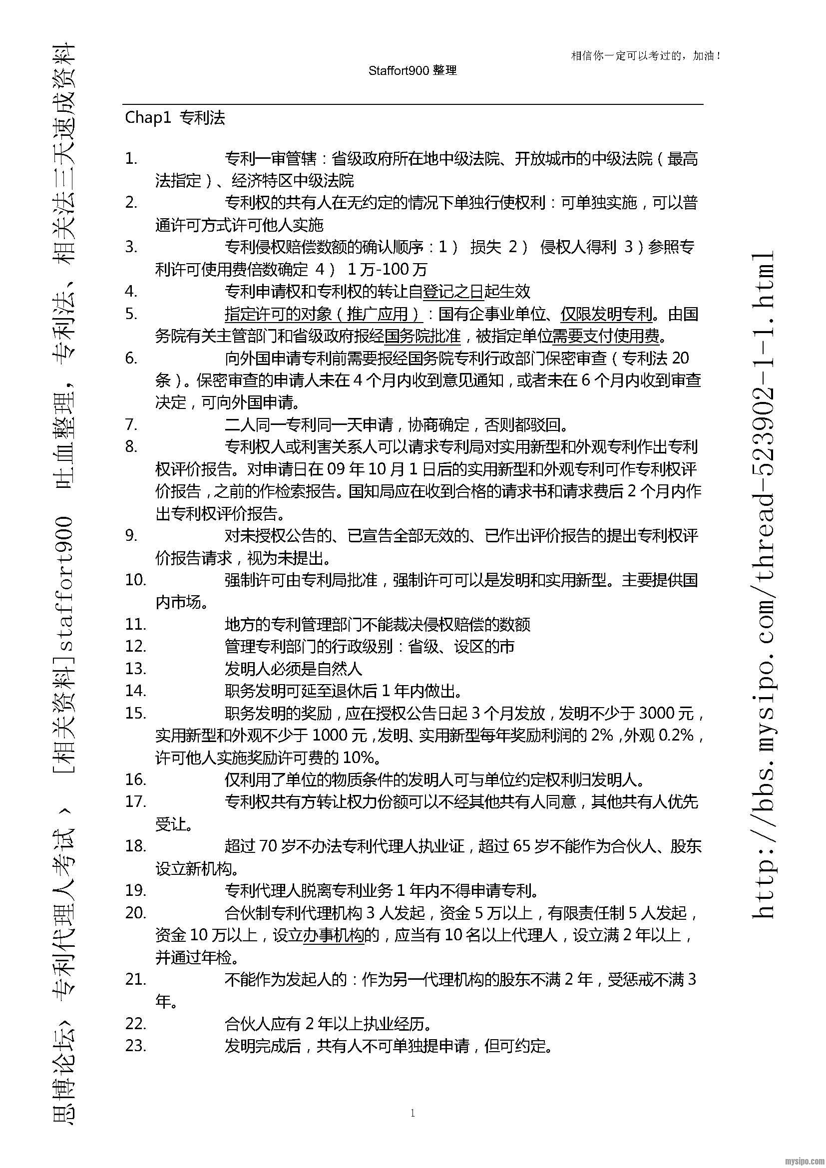 本人的word专利法、相关法三天速成资料,供大家参考。