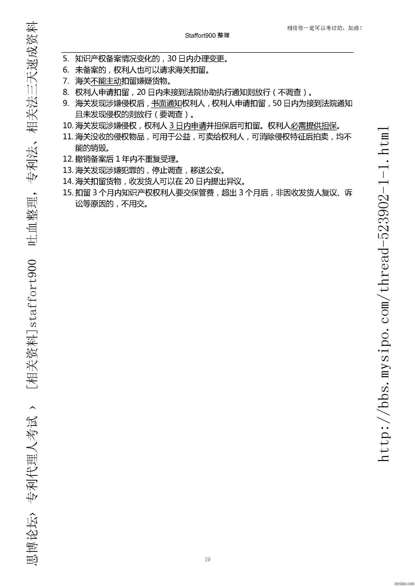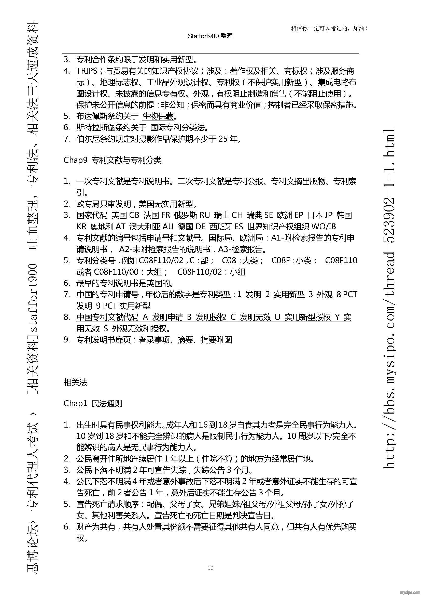 是关于专利法、相关法的知识点总结,总共将近两万字。这次考下来,感觉题目至少有一半以上是那个帖子里的知识点。