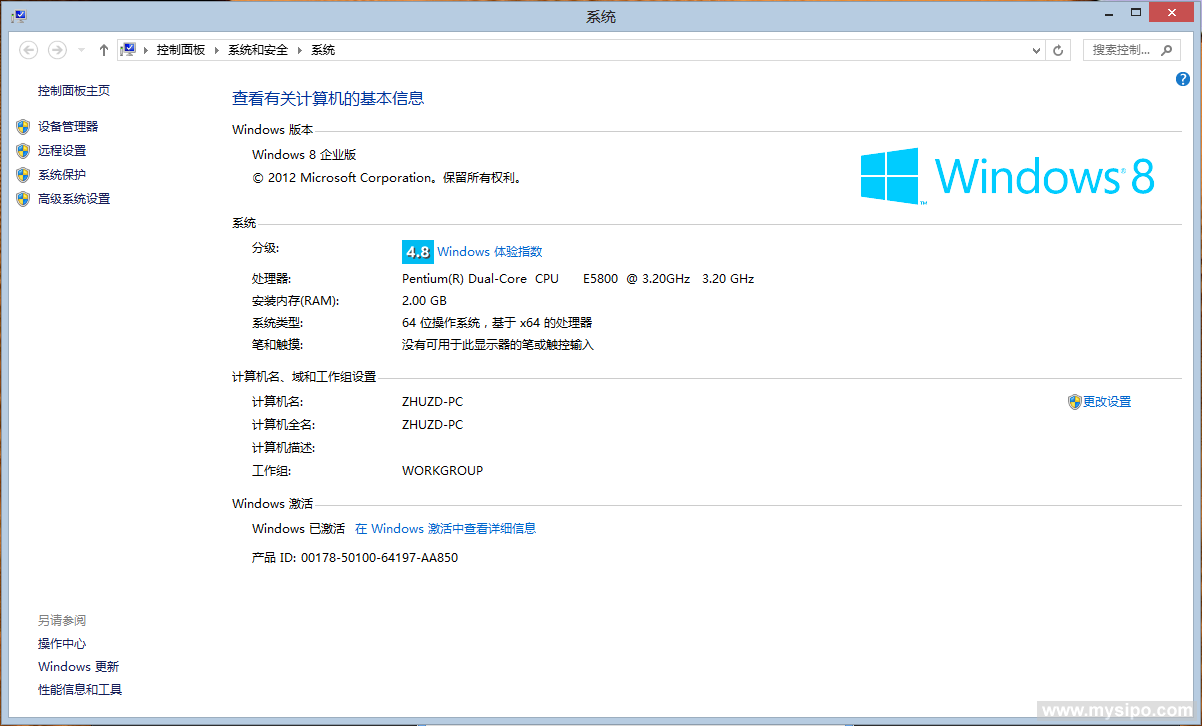 Windows8系统信息(点击图片可放大):