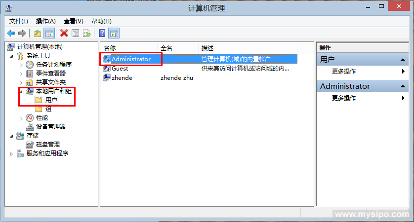 该问题主要影响CPC的升级,并不影响CPC的正常使用。要解决该问题,只要修改账户对Update文件夹的权限就可以了。由于在Window7和Windows8中普通管理员帐户没有修改该文件夹的权限,因此需要切换到超级管理员帐户进行修改。切换到超级管理员帐户的方法是:在桌面上右击“我的电脑”,选择“管理”,弹出计算机管理窗口。参见图三,在窗口左侧依次选择“本地用户和组”、“用户”,然后右击用户列表中的“Administrator”,选择“属性”,弹出Administrator账户属性窗口。