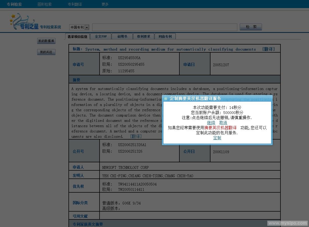 4。专利之星还有英汉、汉英、日汉自由翻译,下次再做介绍。目前翻译套餐均可在用户中心-功能订制中查看。