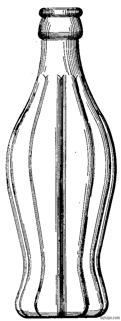 图1是可口可乐公司申请的一项瓶子外观专利,该专利显示了线条阴影的使用。在每个垂直凹槽附近画上紧密间隔的细垂直阴影线,以显示表面朝向每个凹槽凹陷。在瓶子顶部的三个水平位置绘上紧密间隔的细水平排线,以及在顶部开口附近的水平位置绘上垂直表面曲线;