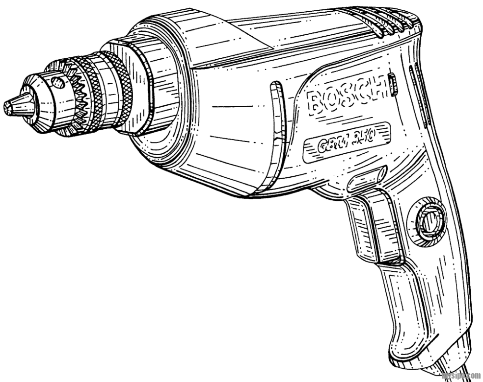 图2提供了设计专利中的阴影的另一个方案。主要使用线条排线。由于所示的电钻具有许多不同的弯曲表面,因此使用许多阴影线来显示那些弯曲表面;
