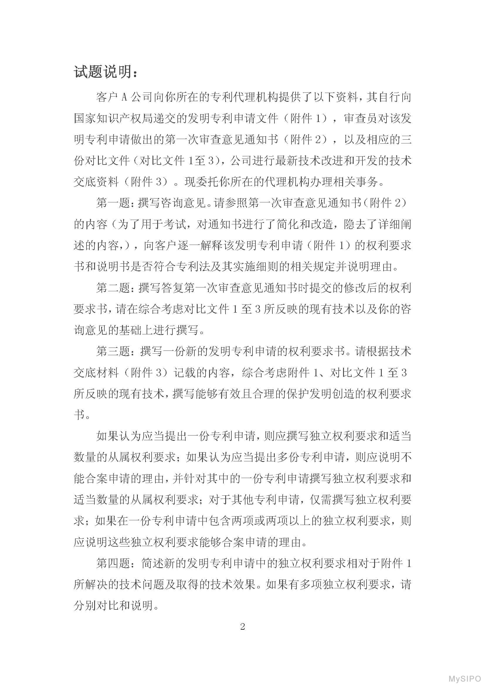 客户A**向你所在的专利代理机构提供了以下资料,***向国家知识产权局递交的发明专利申请文件(附件1),审查员**对该发明专利申请做出的第一次审查意见通知书(附件2),以及***的三份对比文件(对比文件1至3),公司进行最新技术改进和开发的技术交底资料(附件3)。现委托你所在的代理机构办理**事务。