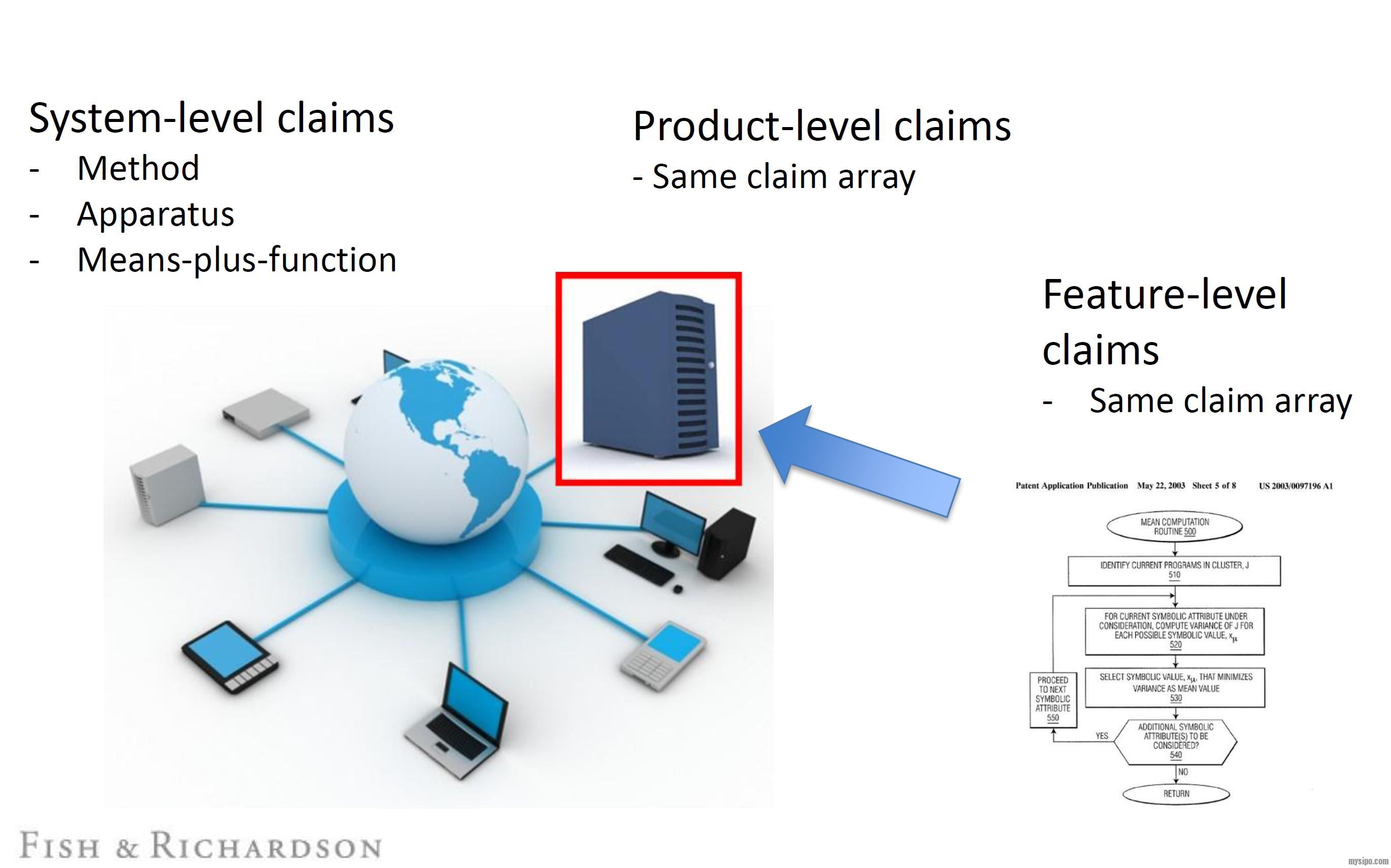 如前所述,当前的“单侧撰写”模式,由于机械照搬部分移动通信类专利所定立的规则,演化成了“单一节点”作为主题的撰写模式。但是,“单侧撰写”模式的基本原理,是避免出现无直接侵权人的状况,并降低侵权取证的难度。因此,对“单侧撰写”的主题安排,所考虑的关键因素应当是在专利实施过程中,是否存在直接侵权人,而不是具体的系统中的某个元件由谁制造和布置,或者去数系统中到底有多少个节点就布置多少权利要求。在“奇梦达诉惠普案”中,涉案专利属于标准必要专利,且专用于服务器,从当时的产业生态看,该存储系统一定是由最终的服务器制造商作为单一实施主体完成,不仅直接侵权人身份清晰,且直接面向最终用户,取证难度很低。在直接侵权人业已存在且易于取证的情况下,执行“单侧撰写”的必要性就大大降低。此时,尽管“存储控制器”和“数据存储器”两个“节点”分别由不同的制造商完成,但是已经不会对侵权判定造成影响。