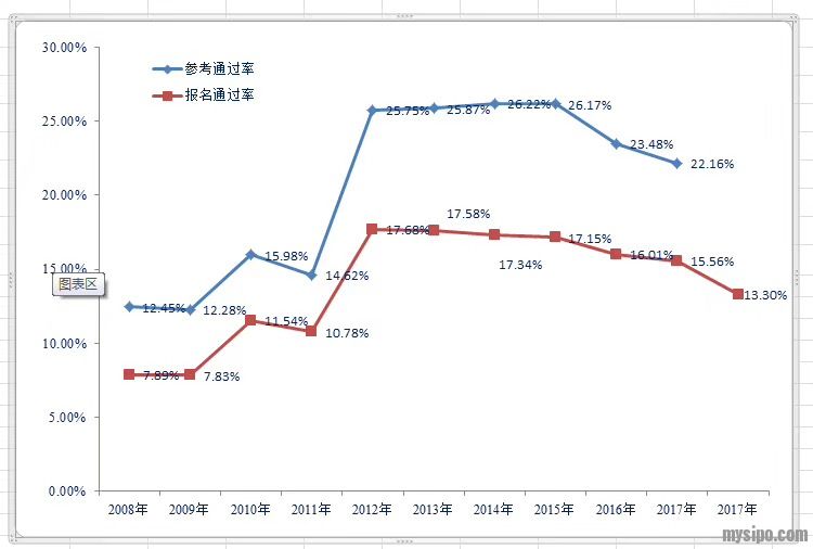 最后看图1,如果按实际参考人数与考试通过人数对比,去年23%的通过率似乎也还能接受。