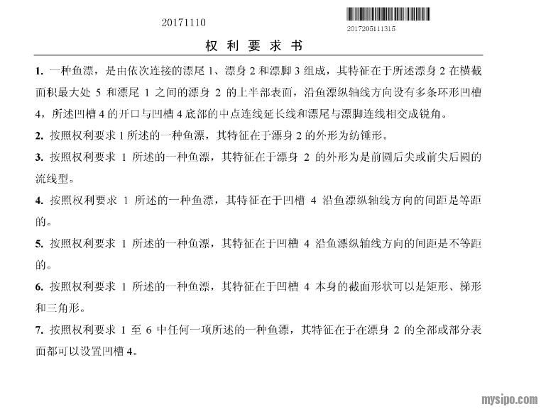 专利解决技术问题的方法是:在实心的物体(即不改变形状的物体)上设有多条环形凹槽,使鱼漂上浮的阻力增大,一旦鱼漂投入水中时,当鱼漂没入水中一定体积产生生的浮力达到鱼漂的重量时,由于开槽的存在使得鱼漂上浮的阻力增加,因此鱼漂可以自动的、持续的、稳定的悬停在水中。