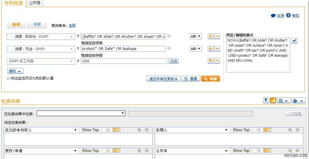 专家检索逻辑本质上跟表单检索没什么区别,主要是方便编写检索式,尤其是方便灵活运用邻近算符ADJ、NEAR、SAME(个人观点专利检索中要关注检索要素的相关关系,2个检索要素相互挨得很近,背后往往还有更多的隐藏技术信息,例如“插座”和“安全门”2个检索词在一句话中出现,可能就指出该专利内含“滑块”、“弹簧”等元件)。