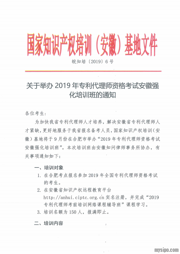 关于举办2019年专利代理师资格考试强化培训班的通知