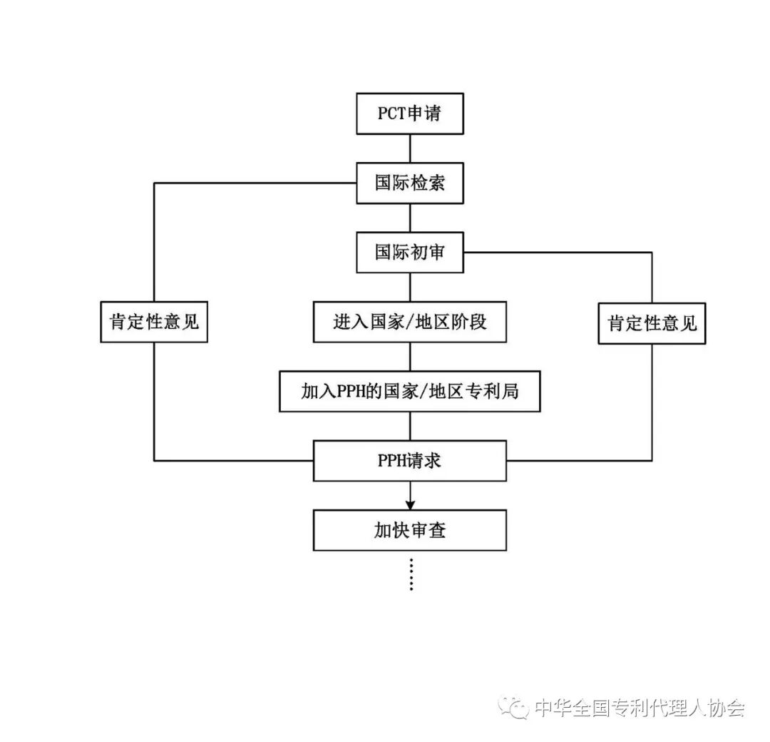 中国PPH可以分成常规PPH(亦称普通PPH)和PCT-PPH 两种。前者是以某国家或地区专利局为OFF,其申请的可授权意见为依据,向OSF提出的加快审查请求。而后者是指 PCT 申请的申请人,从特定的国际检索单位或国际初步审查单位收到肯定的书面意见或国际初步审查报告,指出其 PCT 申请中至少有一项权利要求具有可专利性,申请人可以请求有关国家或地区阶段的申请加快审查。