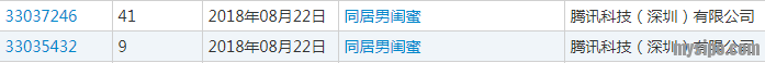 还是在2018年8月22日,腾讯申请注册了两件“同居男闺蜜”商标,也都是在第9类和第41类上。