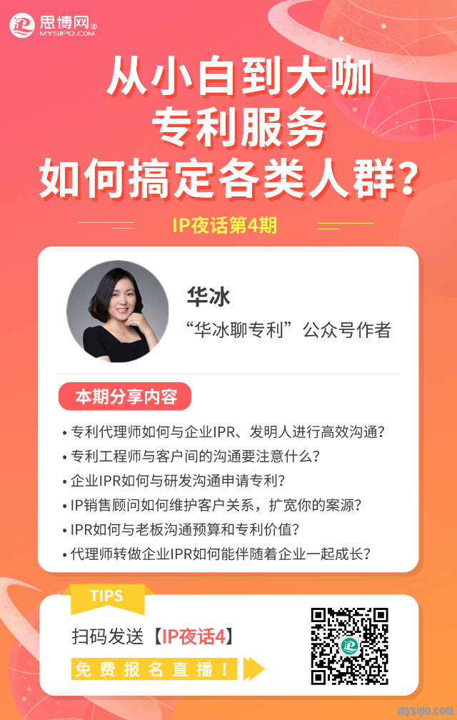 【报名】IP夜话4:华冰:从小白到大咖,专利服务如何搞定各类人群?
