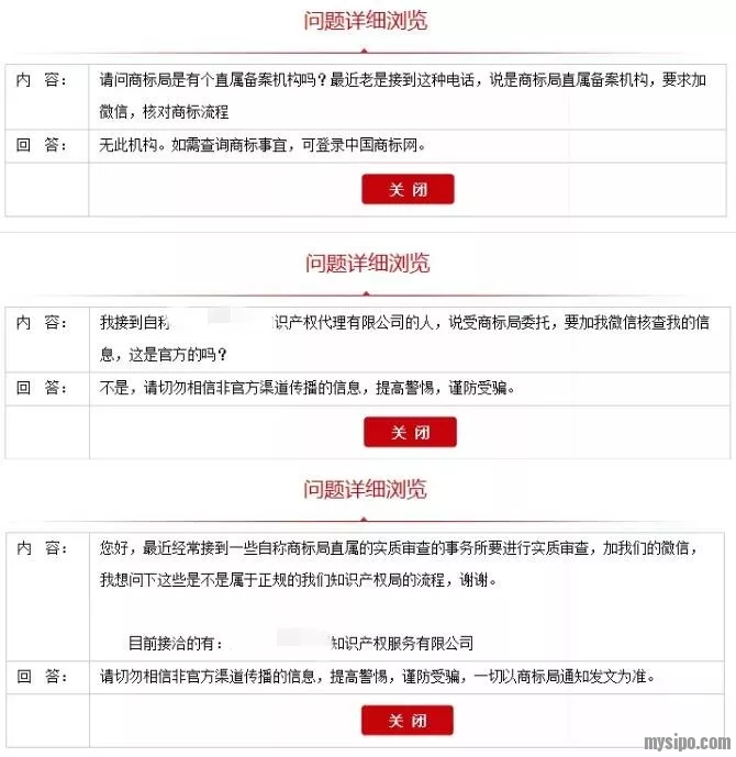 商标局均给予否定的答复,并让咨询者不要相信非官方渠道传播的信息。