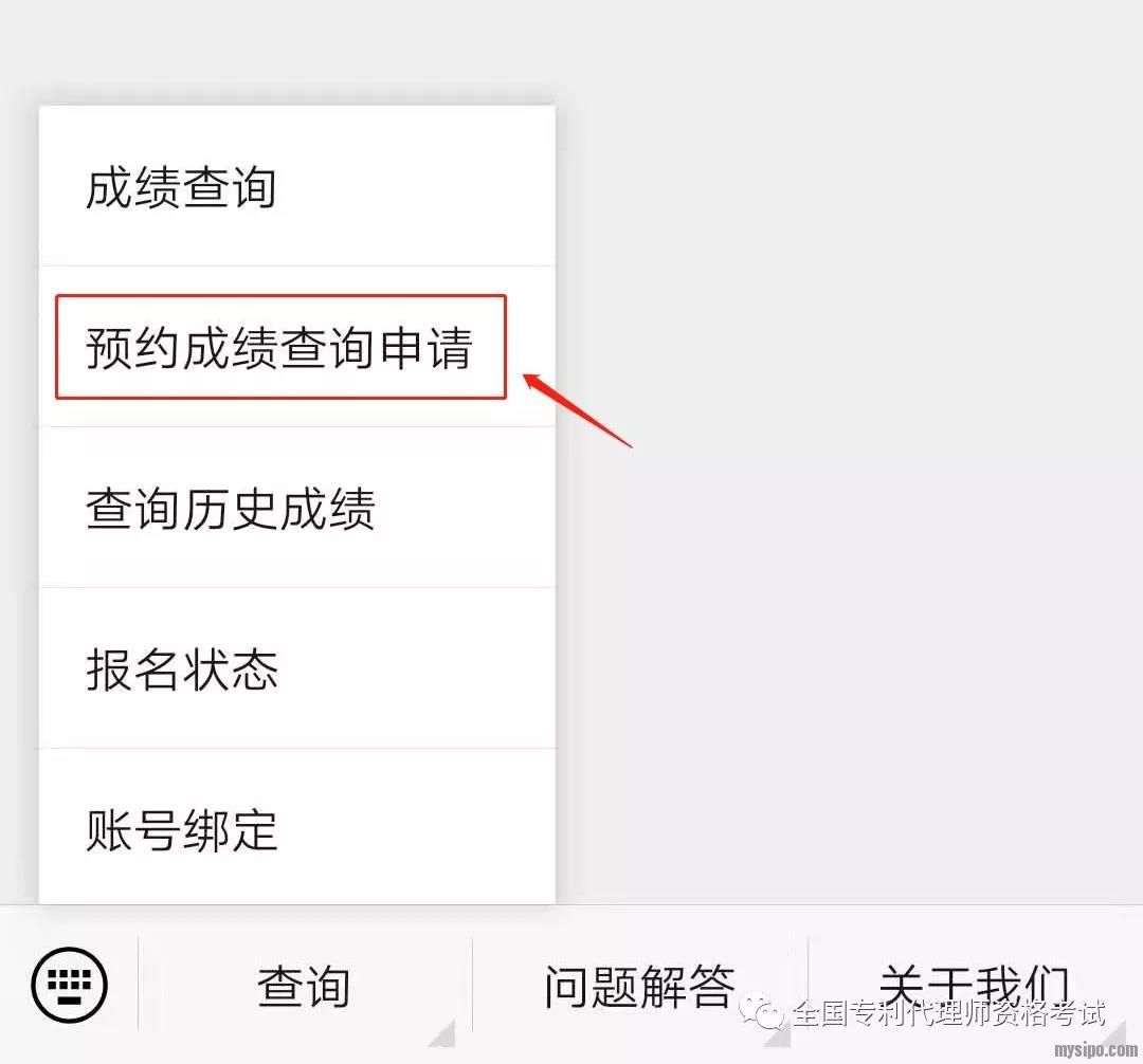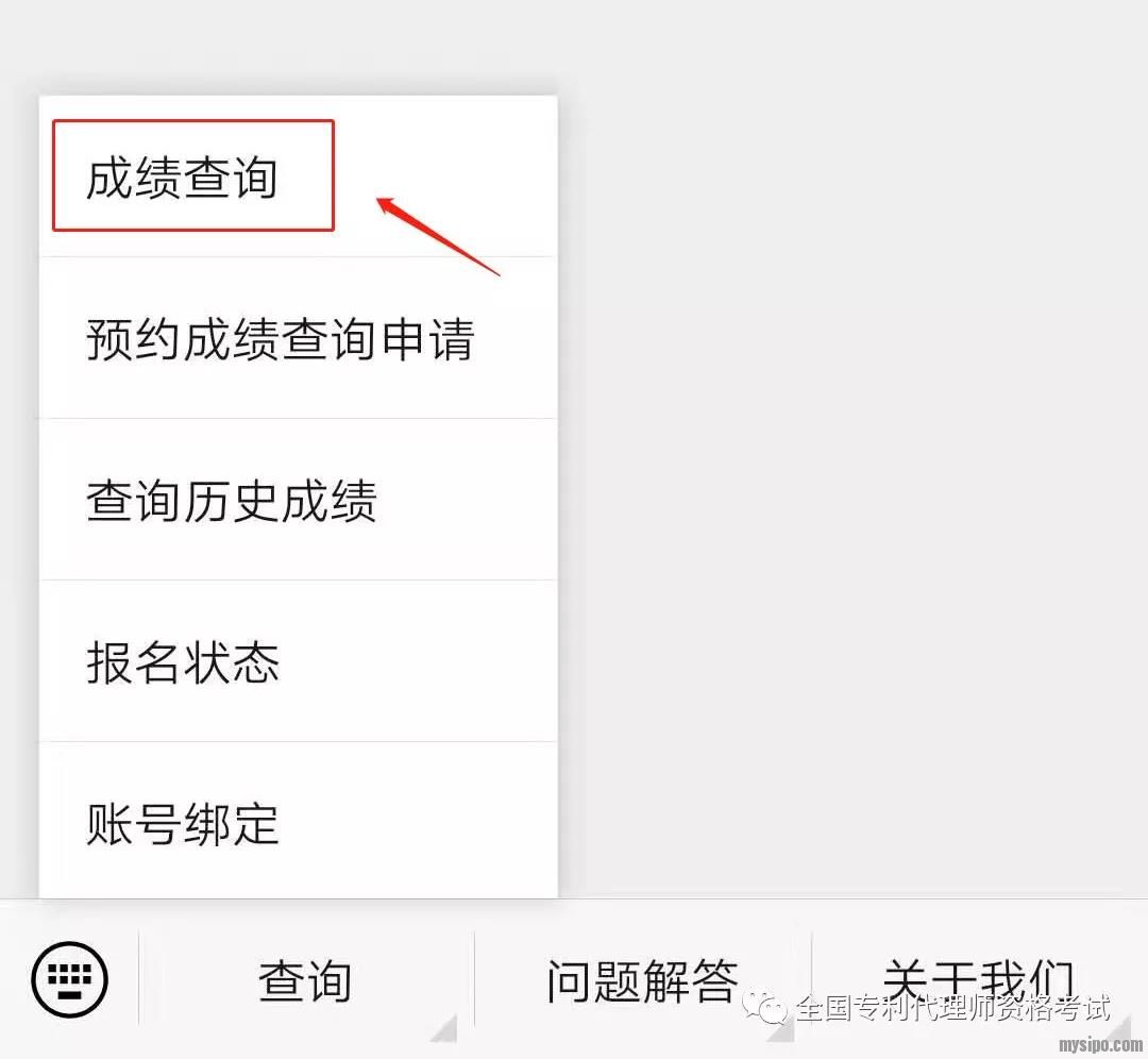 通过“全国专利代理师资格考试”微信公众号进行成绩查询,查询方式如图: