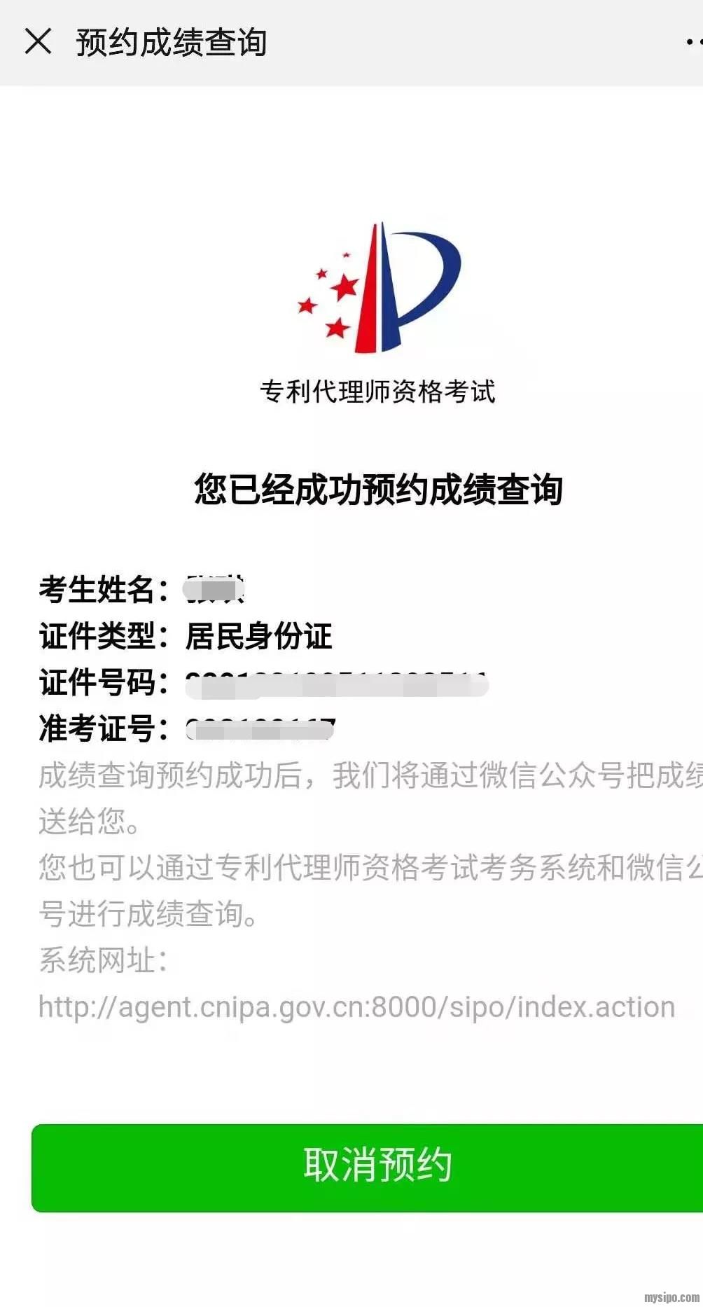 通过“全国专利代理师资格考试”微信公众号预约成绩推送服务。如图: