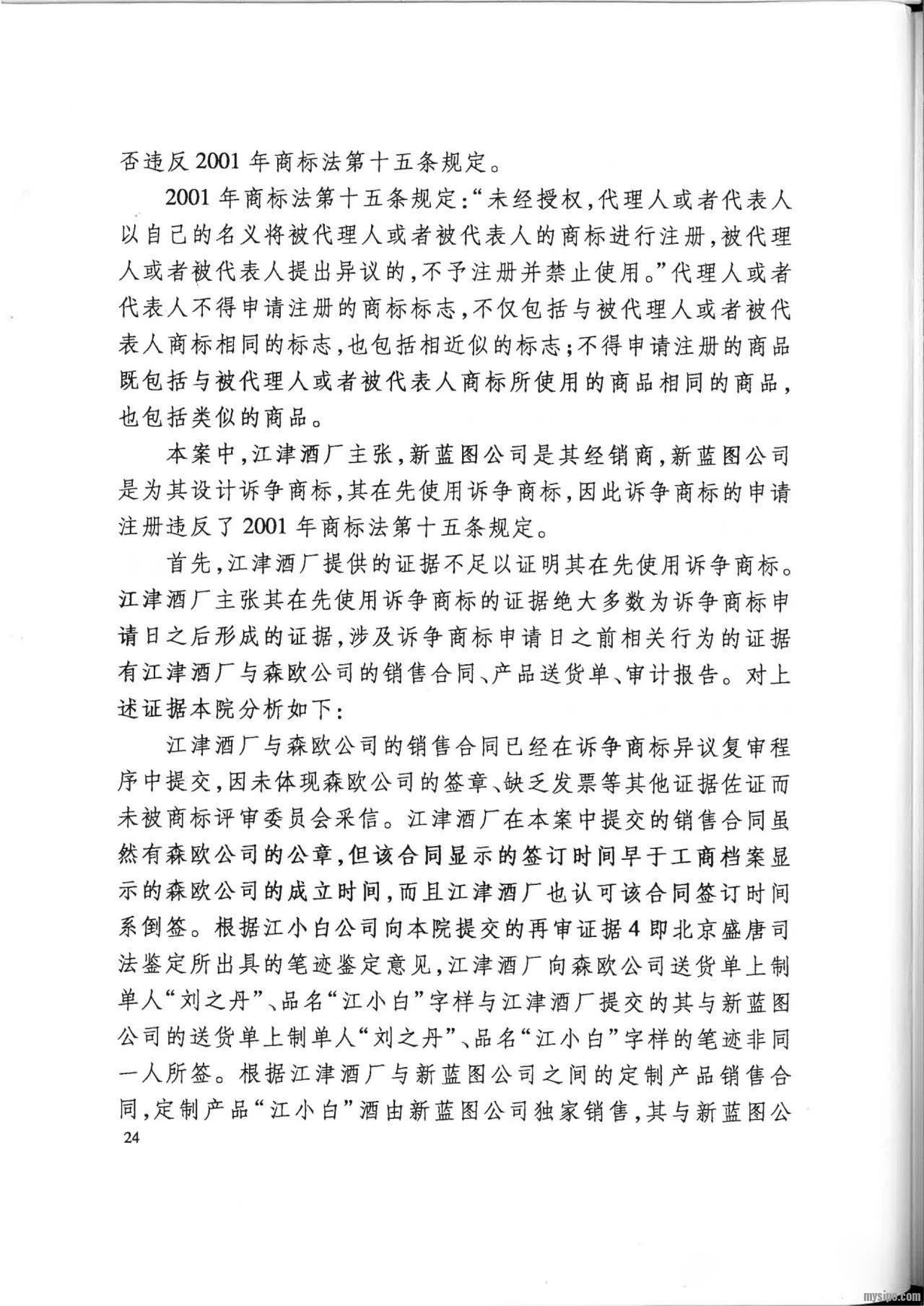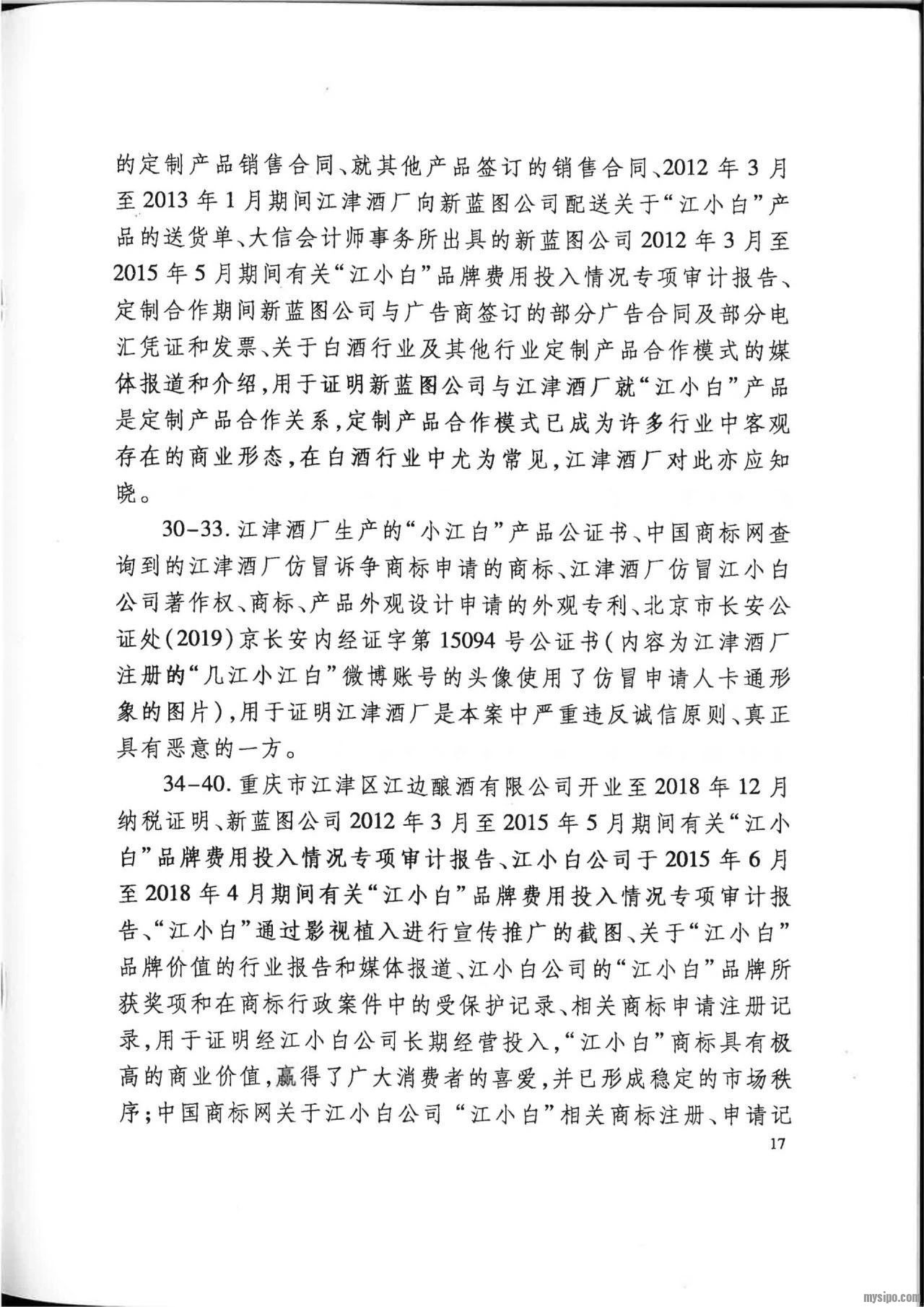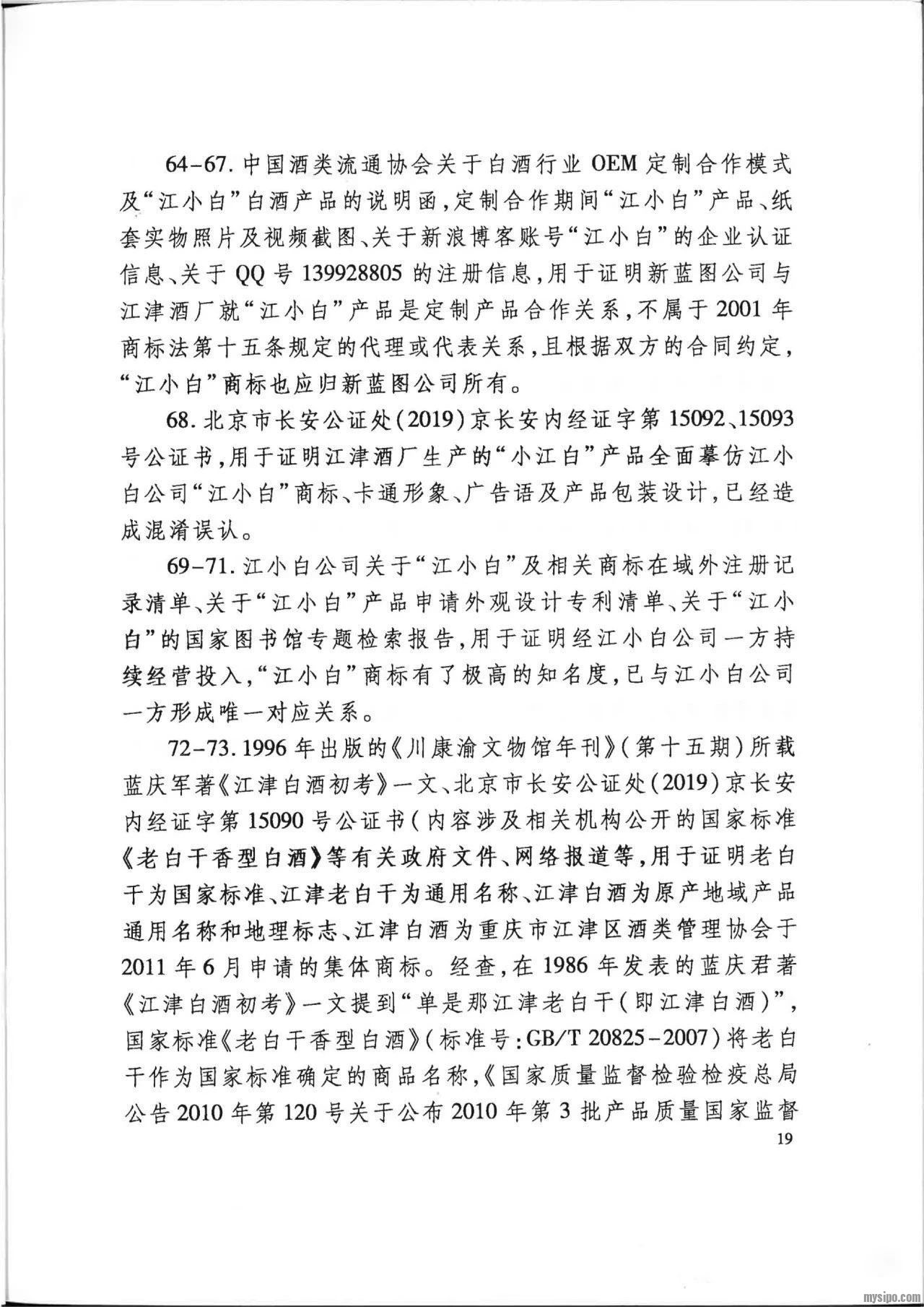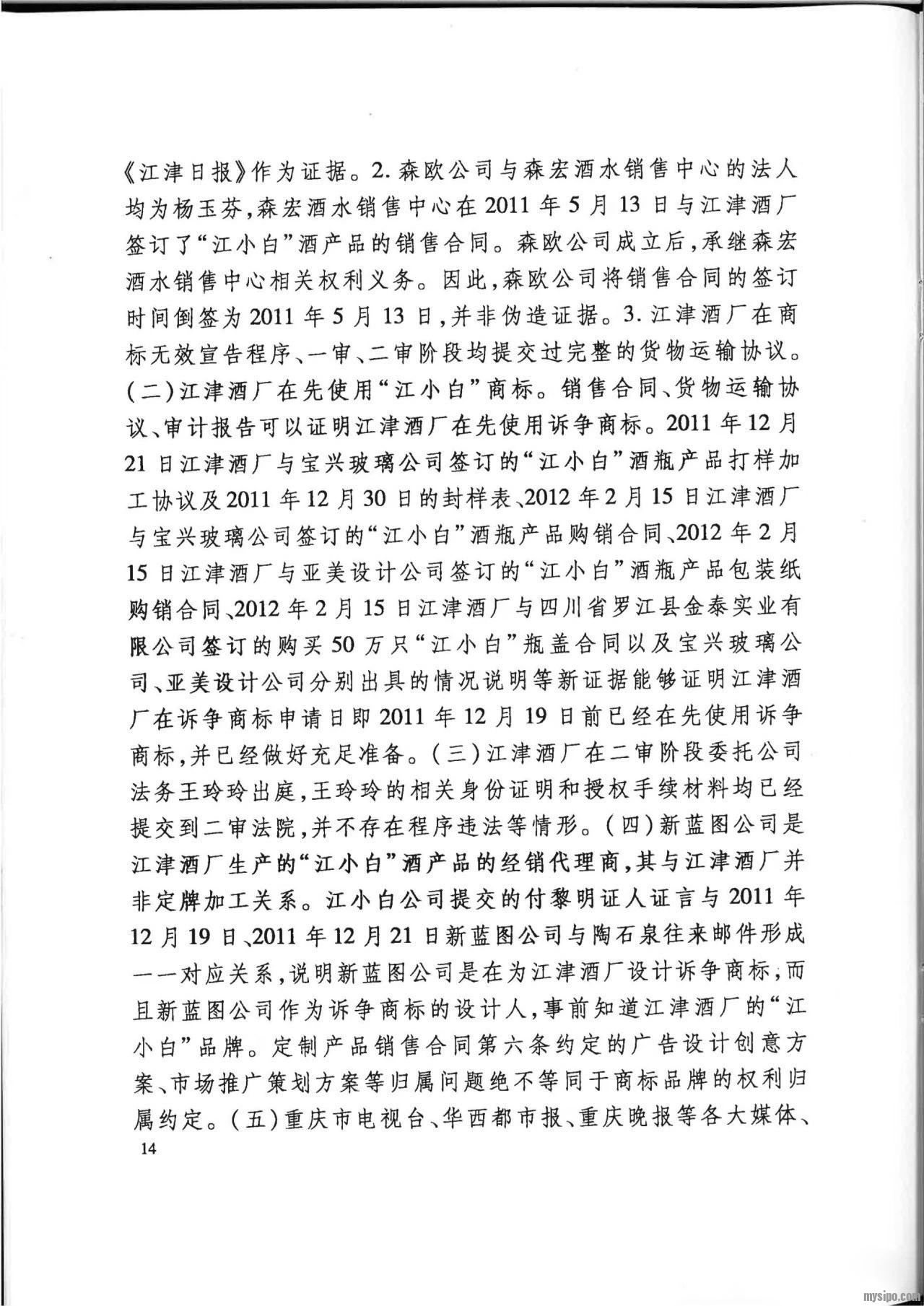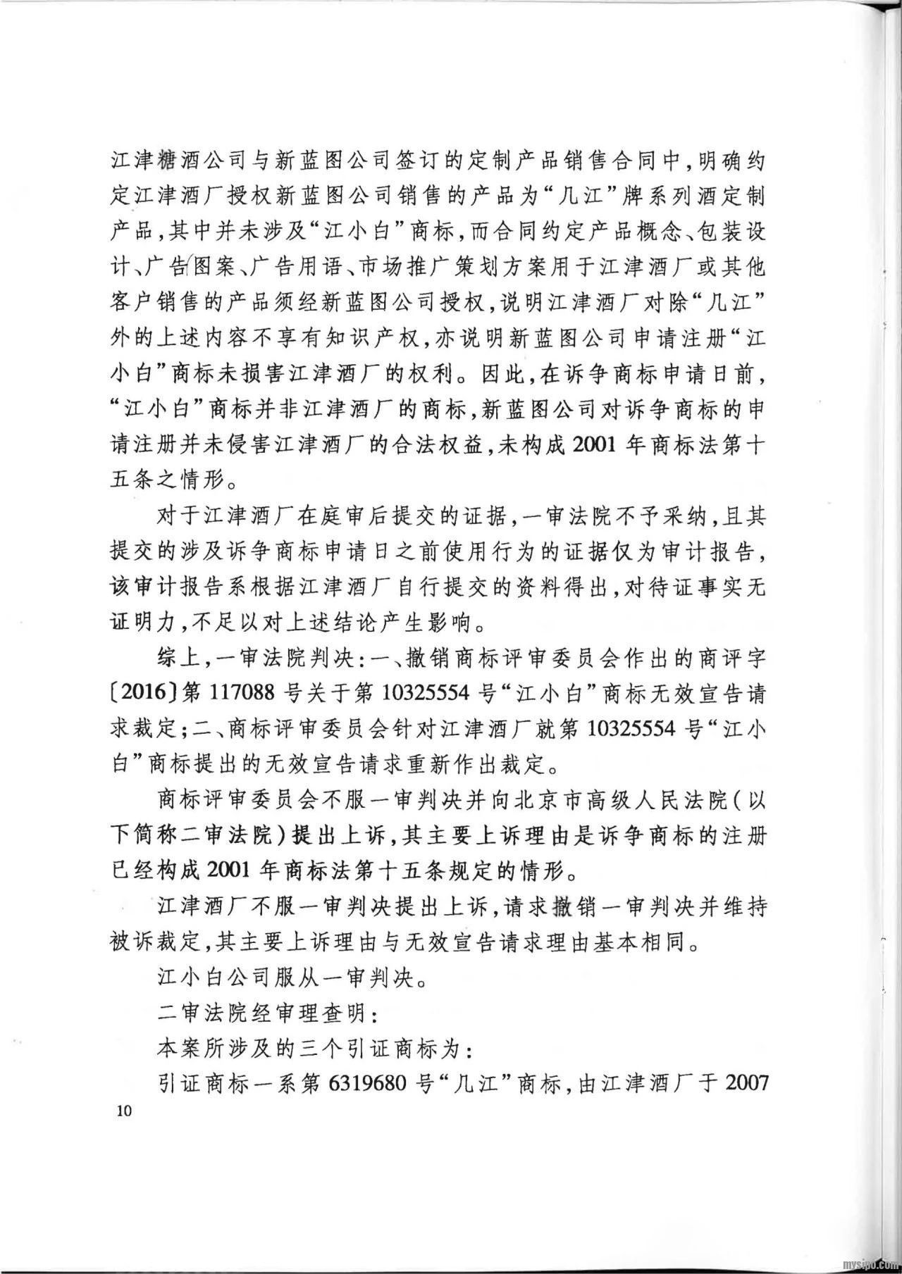然而,江小白公司不服二审判决,向最高人民法院申请再审。2019年12月26日,最高人民法院认为:在诉争商标申请日前,“江小白”商标并非江津酒厂的商标,根据定制产品销售合同,江津酒厂对定制产品除其注册商标 “几江”外的产品概念、广告用语等并不享有知识产权,新蓝图公司对诉争商标的申请注册并未侵害江津酒厂的合法权益,未违反2001年商标法第十五条规定。