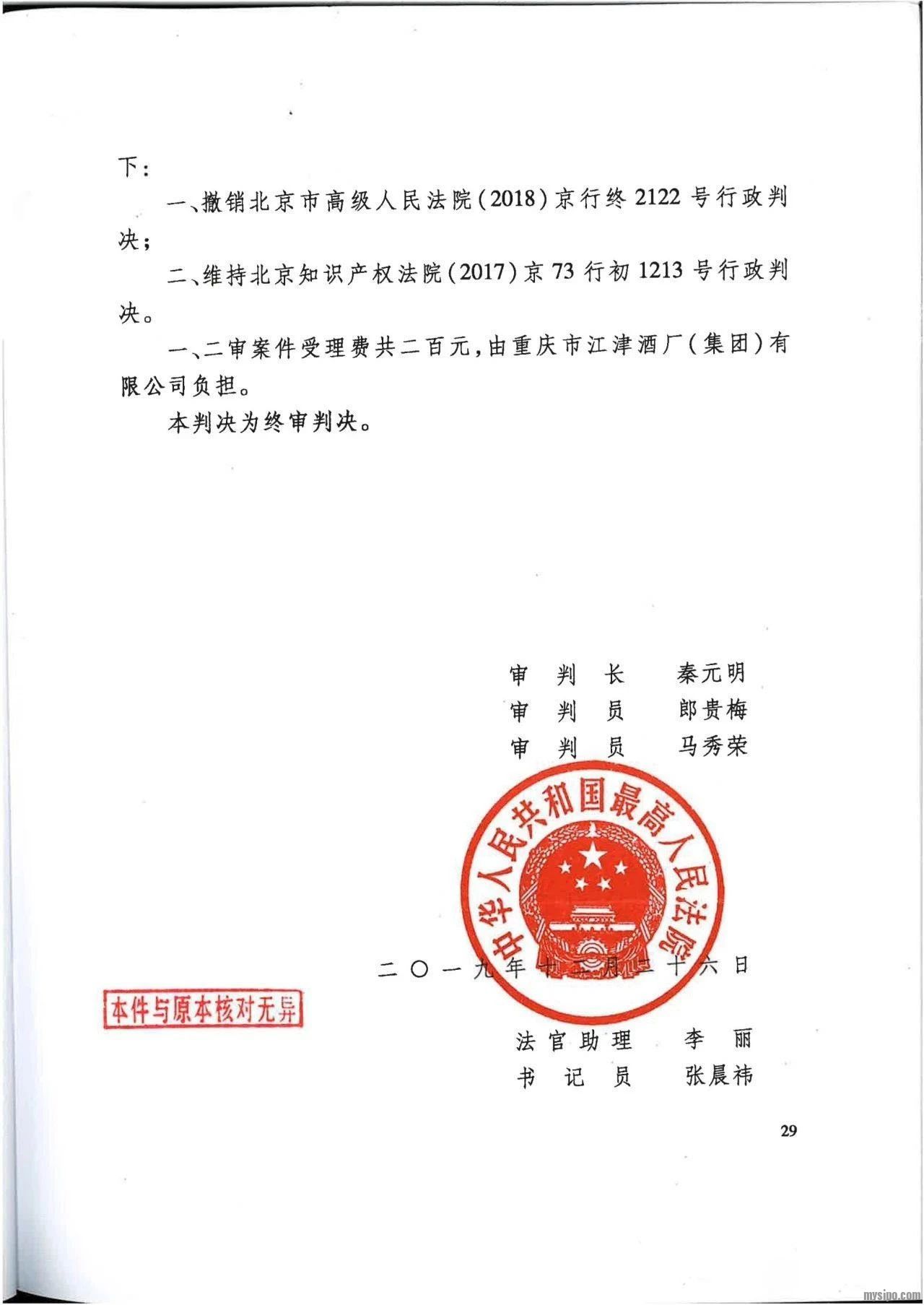 原商评委、及江津酒厂不服一审判决提出上诉。经北京市高级人民法院审理后,针对该案作出二审判决,支持原商评委裁定,撤销了一审判决,驳回江小白公司的诉讼请求。