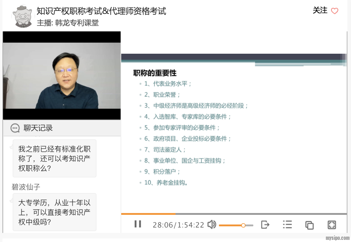 《韩龙:深入解读知识产权师职称考试&专利代理师考试》