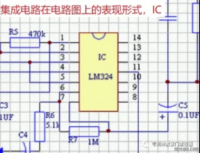 涉及到集成电路的电路发明专利,指的是权利要求的主要技术内容是一个电路结构,虽然在独权中一般不会写集成电路的内容,但实际电路(也就是实施例中)中包括集成电路(IC,Integrated Circuit Chip)。所谓集成电路就是芯片,就是这种焊在电路板PCB上的黑色方块块,里面实质上是一个很复杂的电路,实现某种特定功能,能够以很小的体积代替很大一片电路。