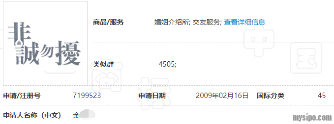 2009年2月16日,金某向商标局申请注册“非誠勿擾”商标,核准使用在第45类交友服务、婚姻介绍所等服务上。