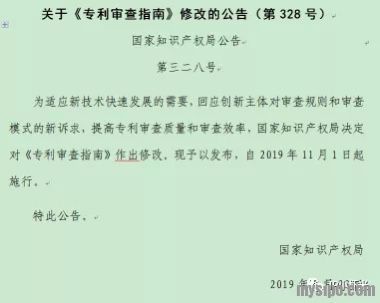 第三,从反向推理的角度,如果还是部门规章,则对规章的修改也应该由市场监管总局以局令公布。可 2019 年 9 月 23 日的《关于<专利审查指南>修改的公告(第 328 号)》的发布主体仍然是国家知识产权局。
