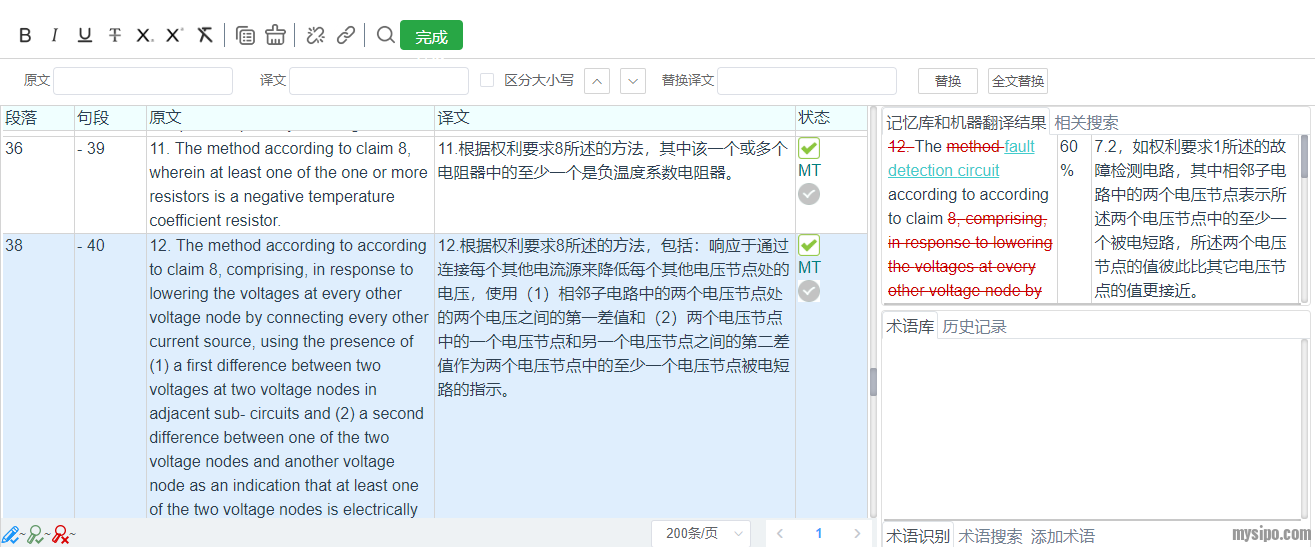 到底如何做到呢?答案就是这些知识产权语言服务平台包含很多专门为专利翻译设计的辅助翻译工具,具体来说: