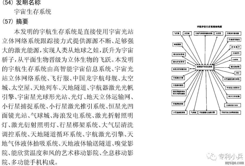 文大神不仅仅是申请了诸多让人叹为观止的发明专利,更牛的是他构建了自己的宇宙体系,大多数专利申请都能相互联系起来,环环相扣、自成体系。小兵觉得文大神有机会成为知名的科幻作家,做专利有可能是选错了路,有兴趣的朋友可以自行某度。