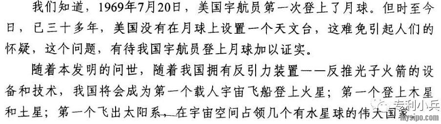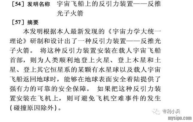 最后,借用上文中某位大神的《反推光子火箭》专利申请文件中的一段话,“随着本发明的问世,随着我国拥有反引力装置--反推光子火箭的设备和技术,我国将会成为第一个载人宇宙飞船登上火星,第一个登上木星和土星,第一个太阳系,在宇宙空间占领几个有水星球的伟大国家”。
