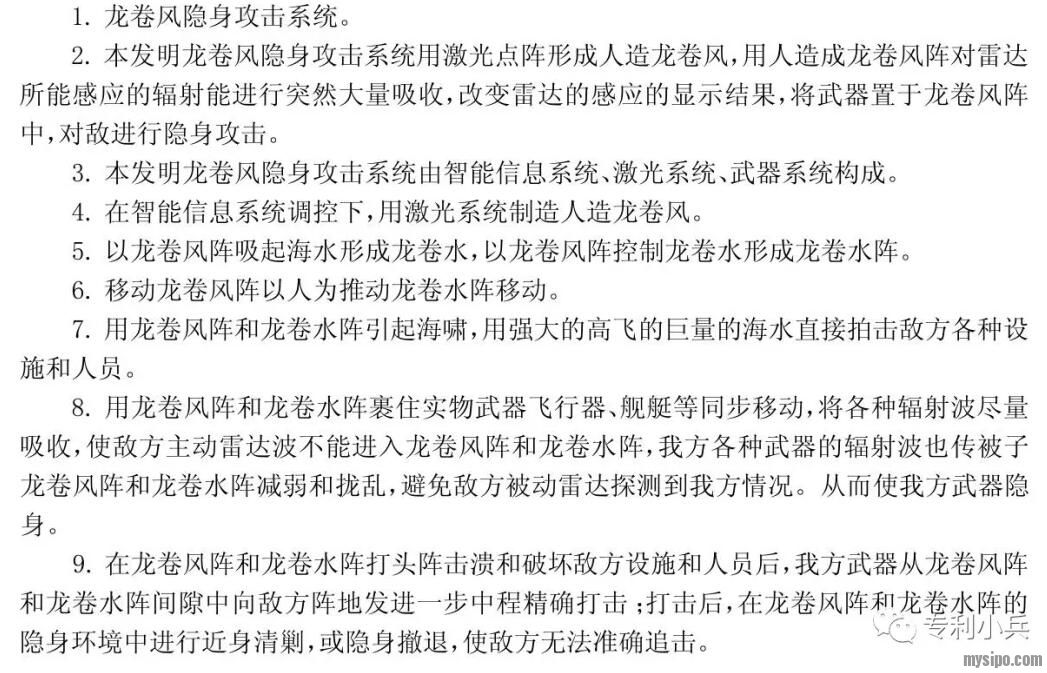 小兵选取其中最感兴趣的一件-《龙卷风隐身攻击系统》,该系统不仅能够形成人造龙卷风,更能隐身于龙卷风中向敌人发起出其不意的攻击,惊不惊喜意不意外?欧麦噶买它买它(此处不作为商标使用),实乃居家必备之良品。有没有一种变身为黄风怪亦或暴风女的感觉~~